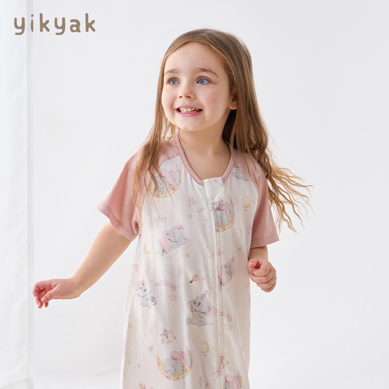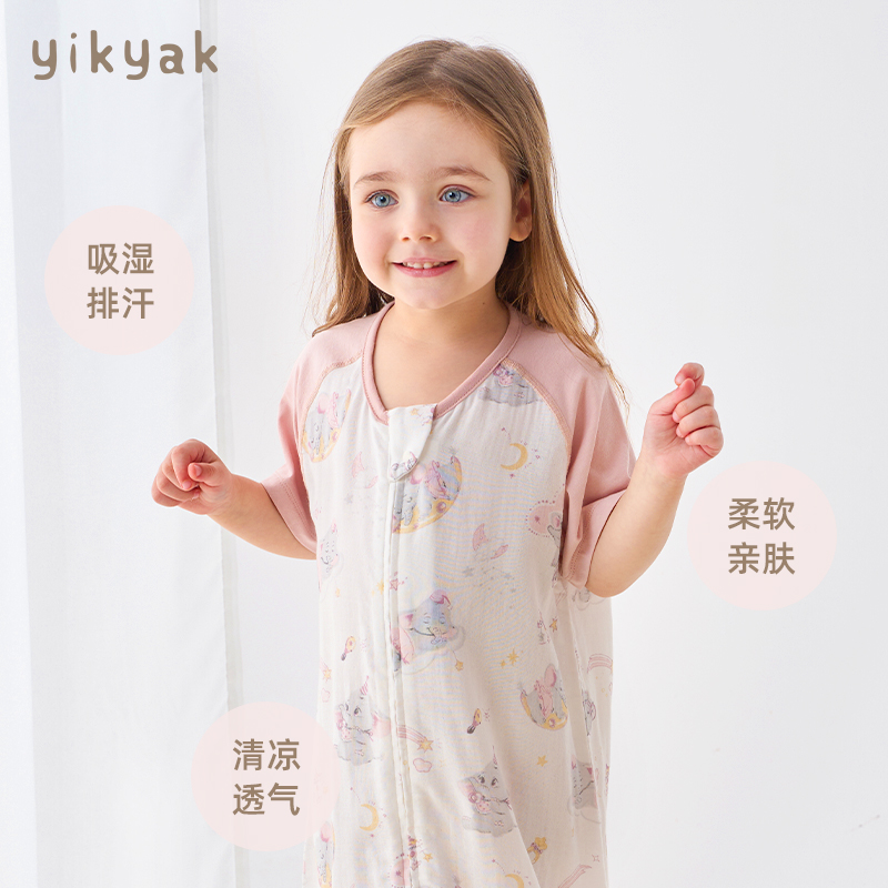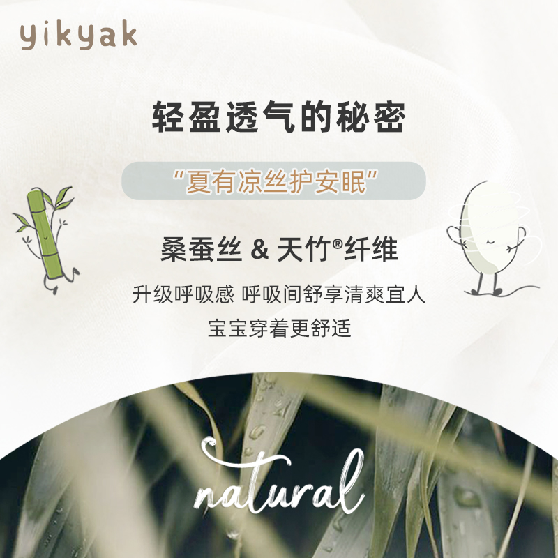 天猫yikyak桑蚕丝短袖分腿睡袋夏季薄款宝宝儿童防踢被空调房睡衣