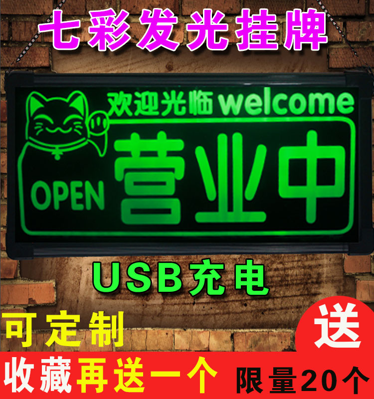 淘宝正在营业中发光创意挂牌led灯提示门牌双面定制欢迎光临空调开放