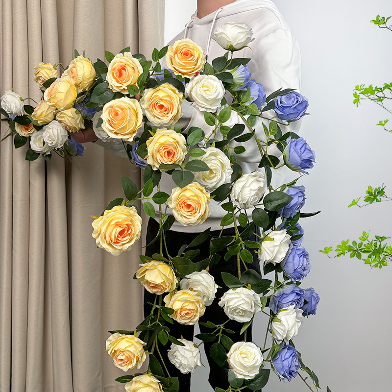 仿真玫瑰花藤条假花是一款绝佳的装饰摆设。这款假花植物以其精美的玫瑰花和藤蔓设计,成为阳台、吊顶造景的亮点。不仅可以用于空调水管道的装饰遮挡,还能为家中增添一份自然之美。其精细的工艺,使得假花看起来非常逼真,是家居装饰的优质选择。无论是放在阳台还是室内,都能营造出温馨浪漫的氛围。这款仿真玫瑰花藤条假花,既实用又美观,让你的家居空间焕发出新的生机与活力。