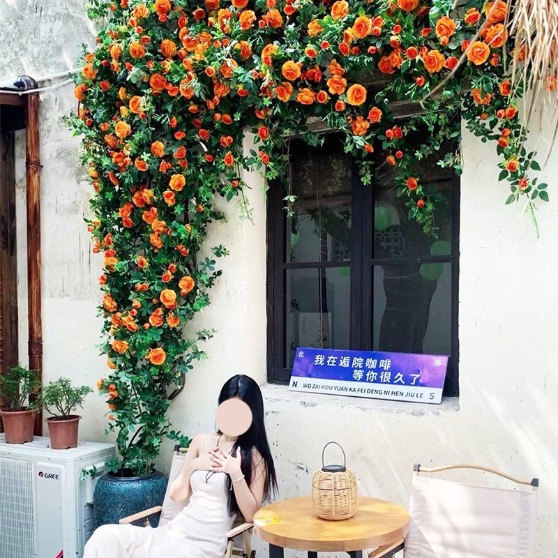淘宝仿真玫瑰花藤条假花藤蔓植物空调水管道装饰遮挡摆设阳台吊顶造景