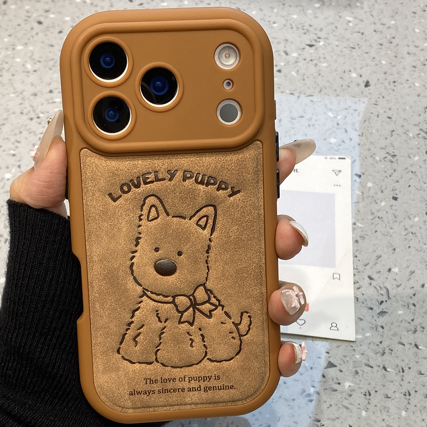 这款秋冬高级感仿皮棕色西高地小狗手机壳,是专为苹果系列手机设计的时尚配件。适用于iPhone 16 Pro、iPhone 15、iPhone 14等型号,全覆盖且防摔性能出色。其独特仿皮材质不仅质感上乘,还具有很好的耐用性,即使在秋冬季节也能为你的手机提供很好的保护。外观设计的西高地小狗图案充满时尚感,棕色与仿皮材质完美融合,让你的手机在人群中脱颖而出。新款超火max手机套,不仅保护手机,更是时尚的象征。