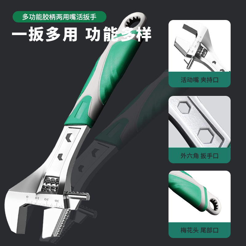 淘宝日本大号活动扳手空调工具安装万能大活口浴板手10寸12寸包胶