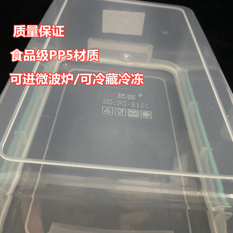 淘宝肥猫双扣保鲜盒透明密封加厚长方形标识冷冻盒商用食品级PP收纳盒
