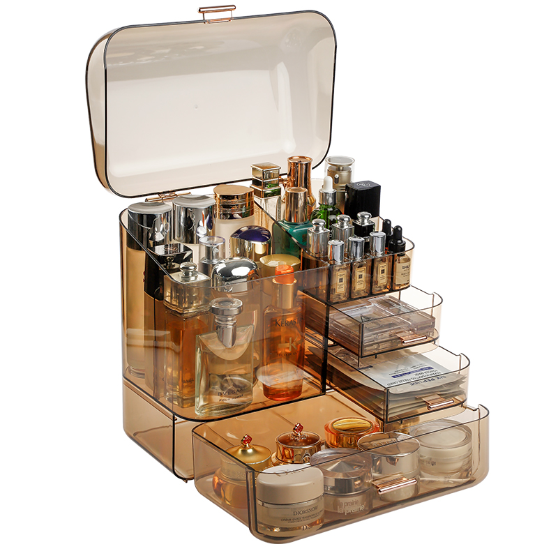 淘宝高级化妆品收纳盒桌面护肤品亚克力透明盒口红面膜分格抽屉整理盒