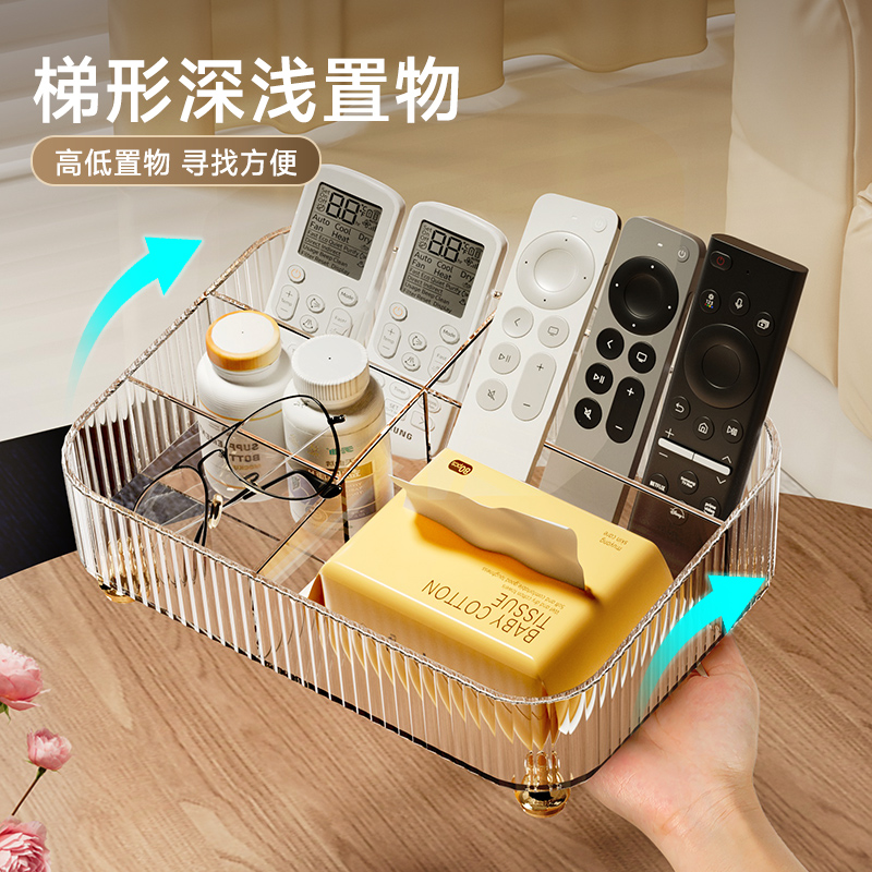天猫遥控器收纳盒创意客厅高档床头柜纸巾盒多功能茶几桌面杂物整理盒
