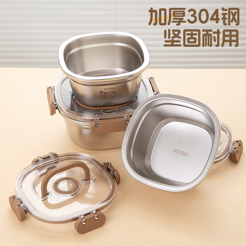 天猫304不锈钢保鲜盒食品级密封饭盒带盖水果便当盒手提冰箱收纳盒子