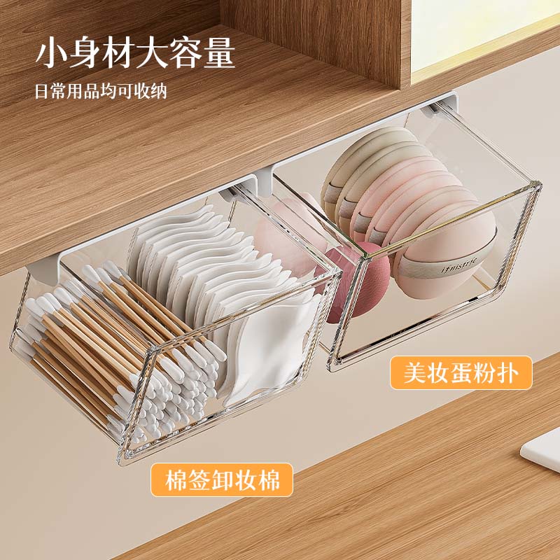 天镜柜下抽屉式收纳盒浴室柜内悬挂置物架化妆品棉片粉扑牙线置物架