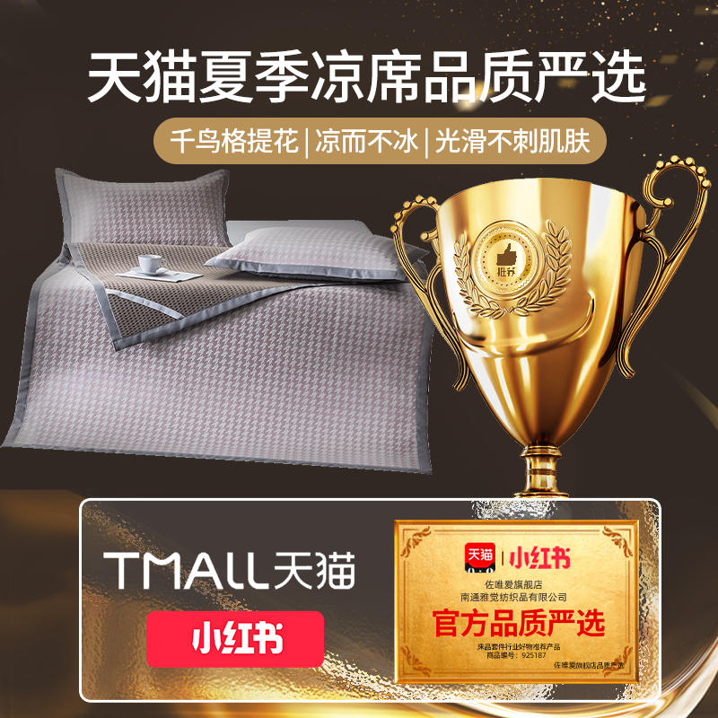 天猫1800D冰丝凉席三件套床笠款夏天新款空调席子夏季可机水洗夏凉席