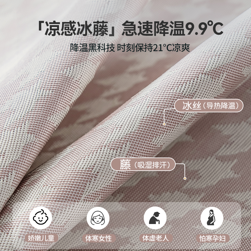 水星家纺450D冰丝席A类抑菌凉感席可水洗夏季凉席床笠式空调席子