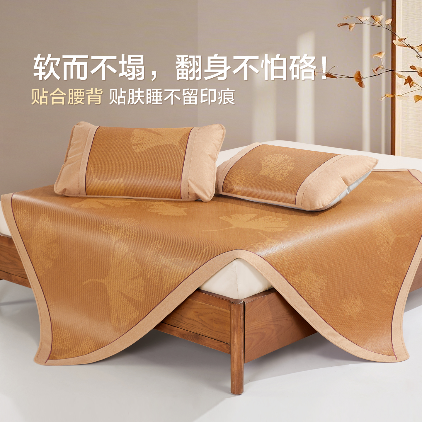 天海澜之家凉感冰丝席三件套夏季软凉席可折叠水洗空调席子宿舍家用