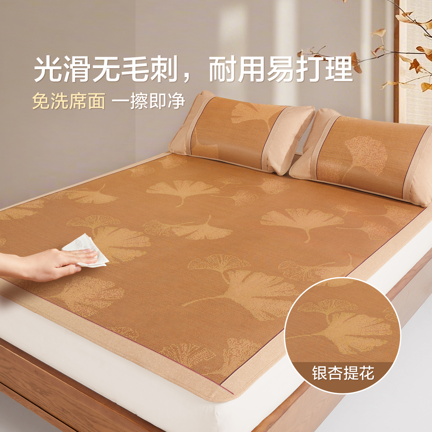 淘水星家纺可水洗提花冰丝席三件套床笠式凉席A类抗菌席子24年新品
