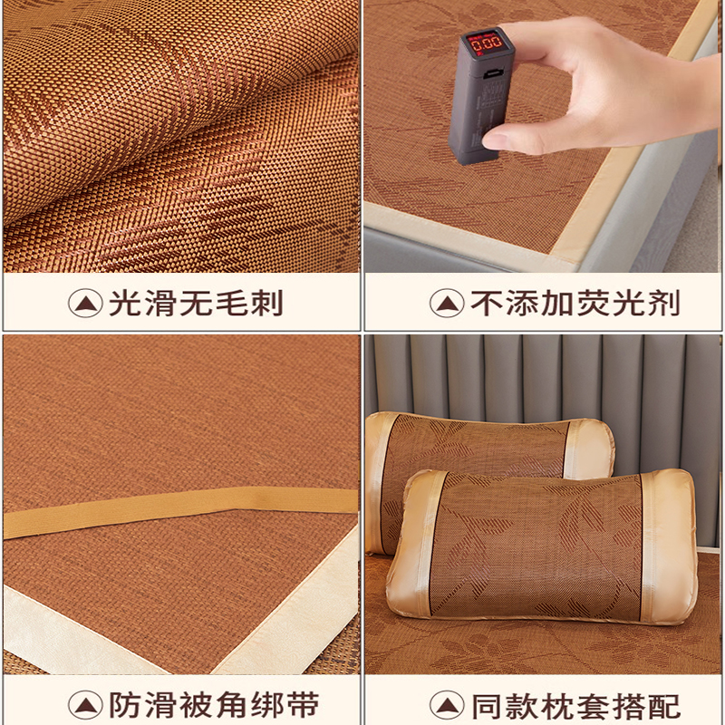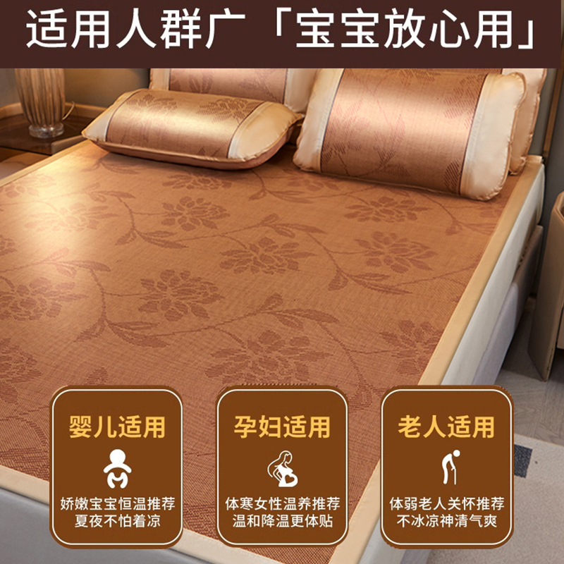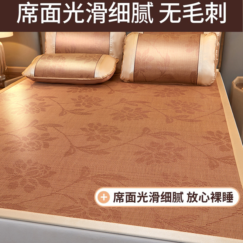夏季凉席三件套可折叠冰丝席高端品牌加厚天然纯藤软席子冬夏两用