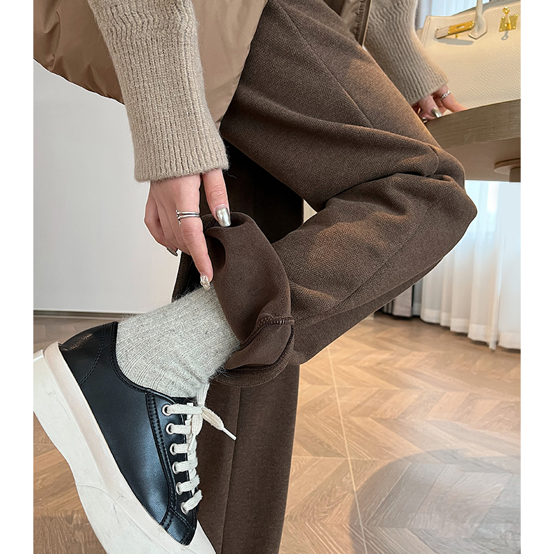 天猫人字纹毛呢阔腿裤女2025新款秋冬窄版加长小个子直筒加绒休闲长裤