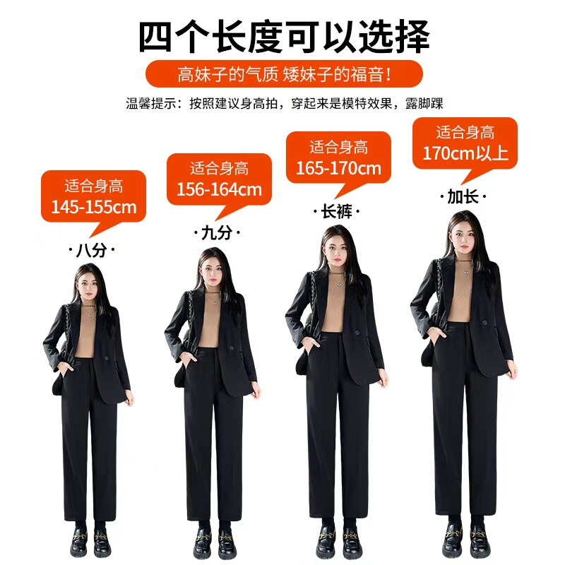 淘宝藏青色加绒直筒西装裤女2025冬季新款高腰宽松垂感加厚休闲烟管裤