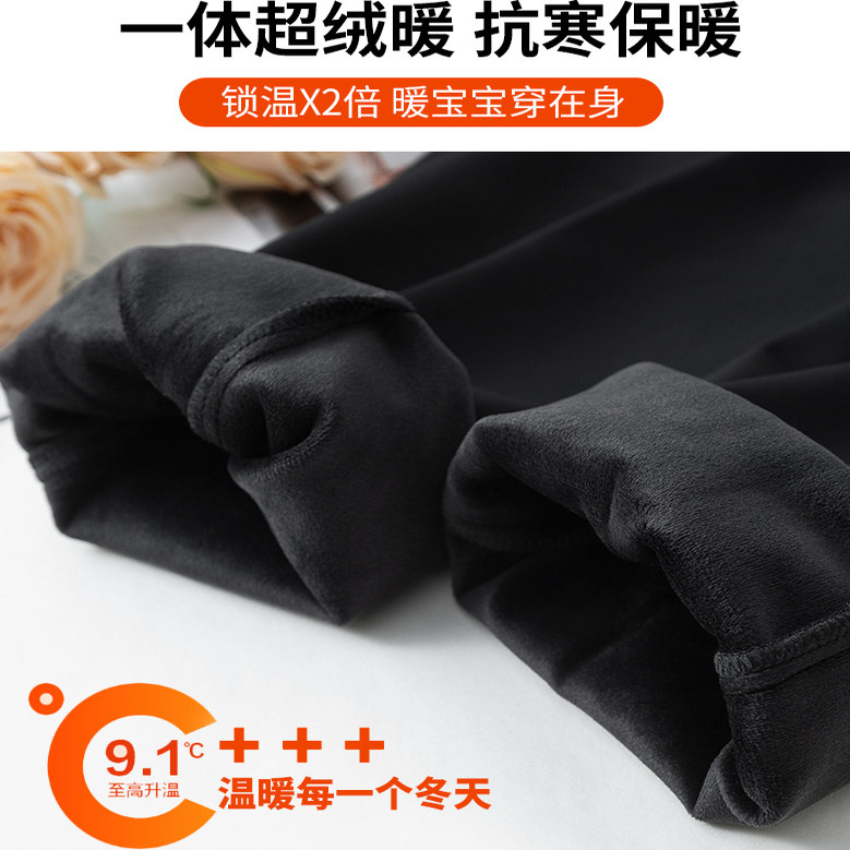 淘300斤大码女装复古加绒窄版直筒牛仔裤女秋冬保暖女裤胖mm阔腿裤