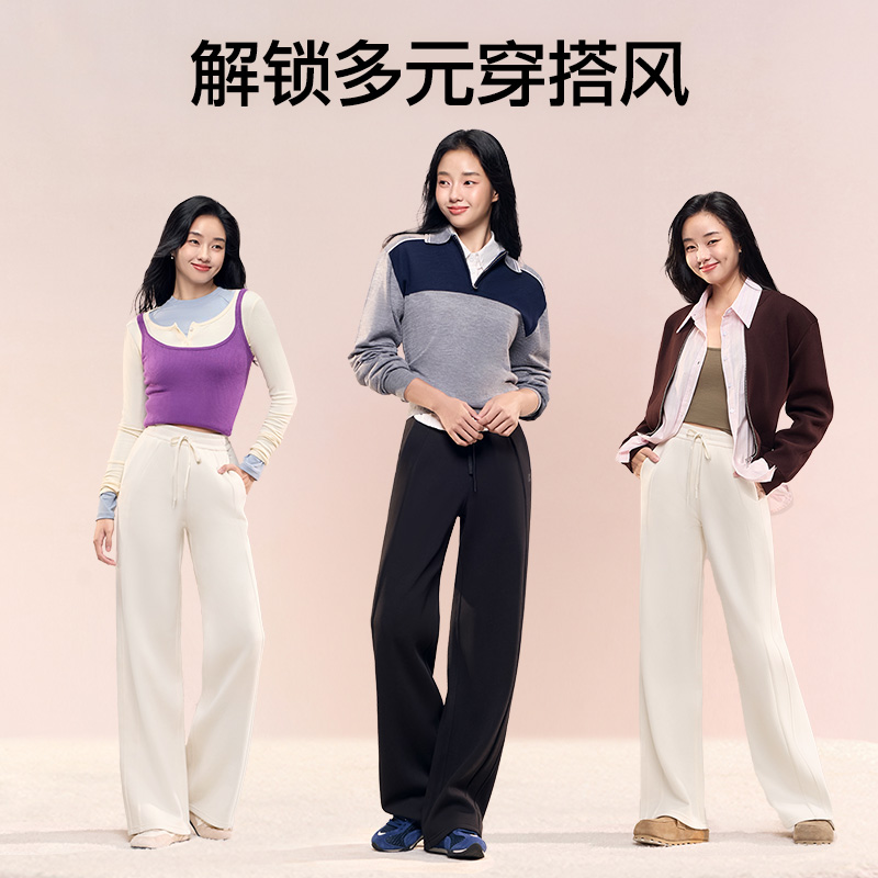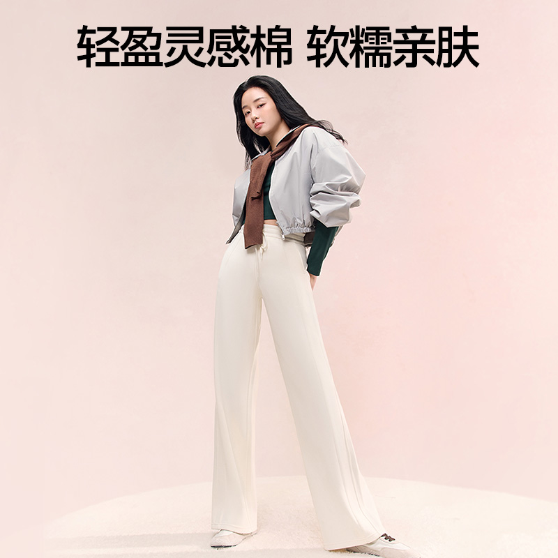 淘宝鞠婧祎同款SIINSIIN卫裤女秋冬加绒2025新款白色垂感直筒休闲裤子