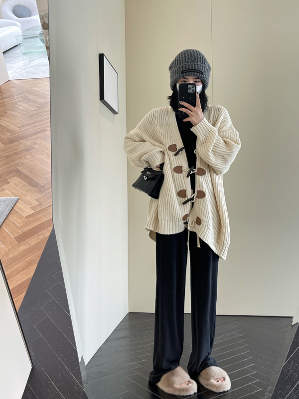 乐库优绵羊毛直筒裤女秋冬高腰垂感加绒加厚挺括休闲拼接阔腿裤子