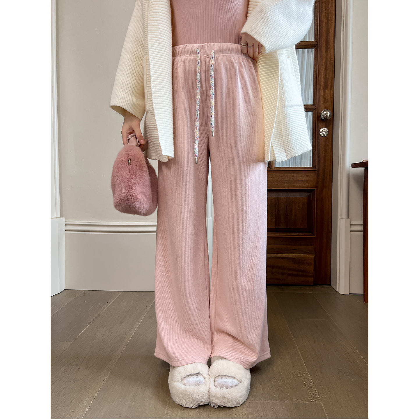 淘秋冬加厚垂坠感真丝阔腿裤女高腰针织炸街长裤外穿休闲直筒羊绒裤
