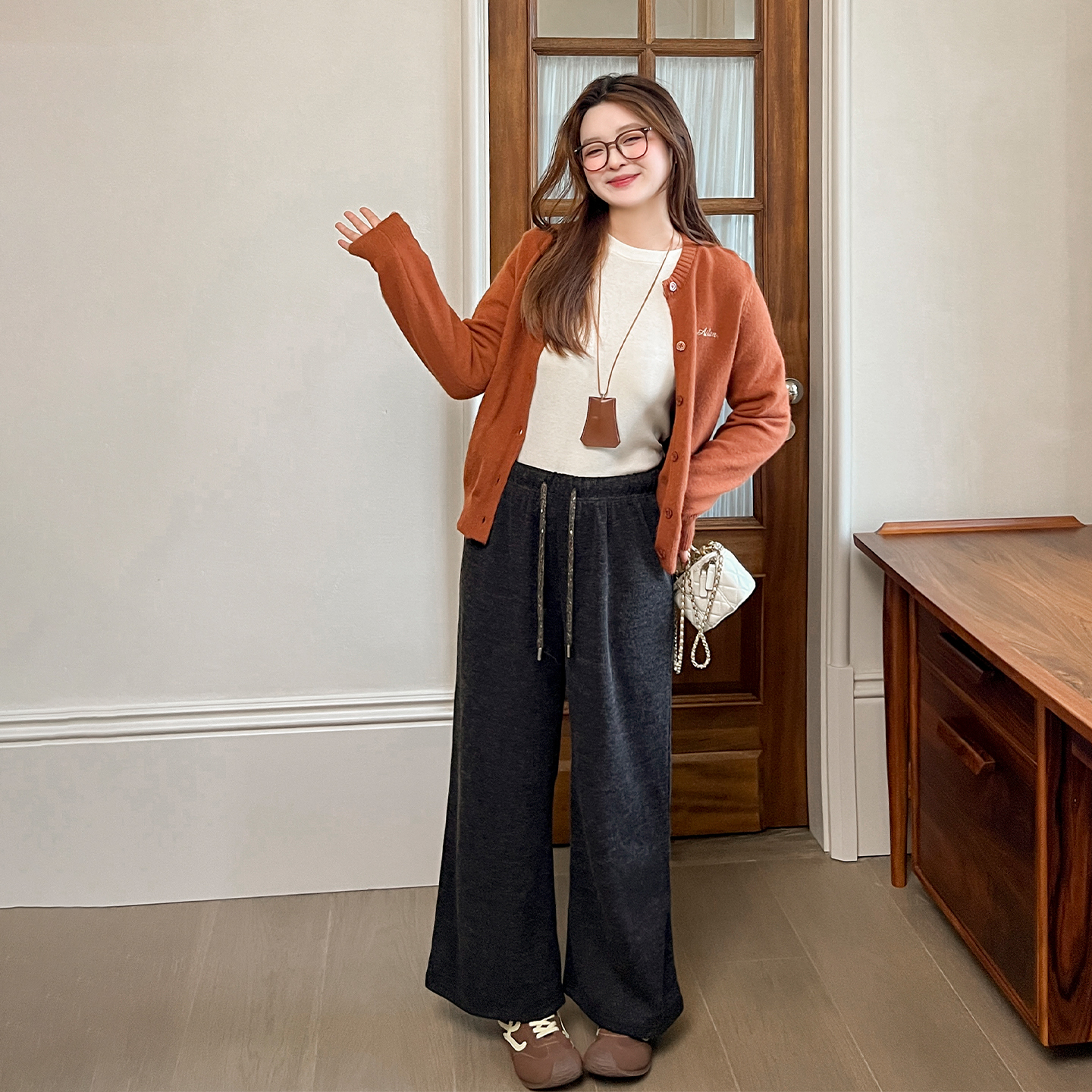 淘宝DM100大码百分百女微胖mm秋冬百搭仿兔毛糯米裤毛巾裤宽松直筒裤