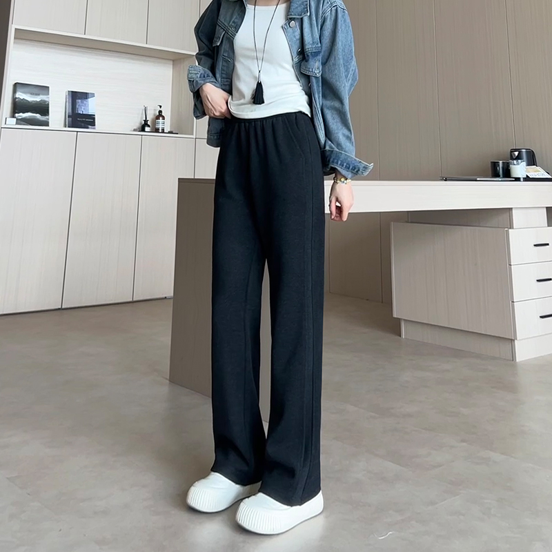 淘宝乐库优绵羊毛直筒裤女秋冬高腰垂感加绒加厚挺括休闲拼接阔腿裤子
