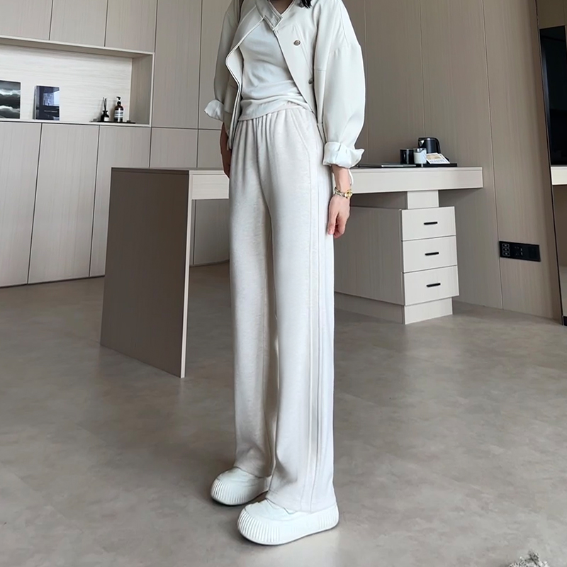 奶茶色裤子加绒糯米裤女款秋冬大码梨形身材慵懒风阔腿直筒休闲裤