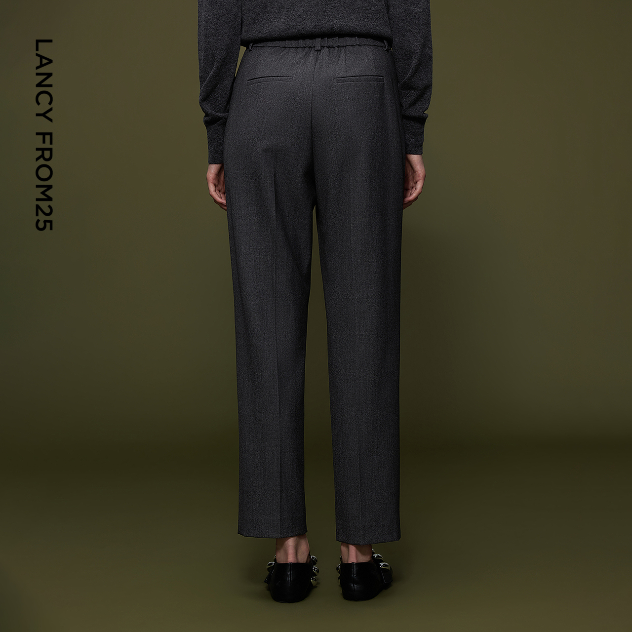 欧货韩系毛呢奶奶裤女2025冬季新款加绒加厚小个子直筒阔腿休闲裤
