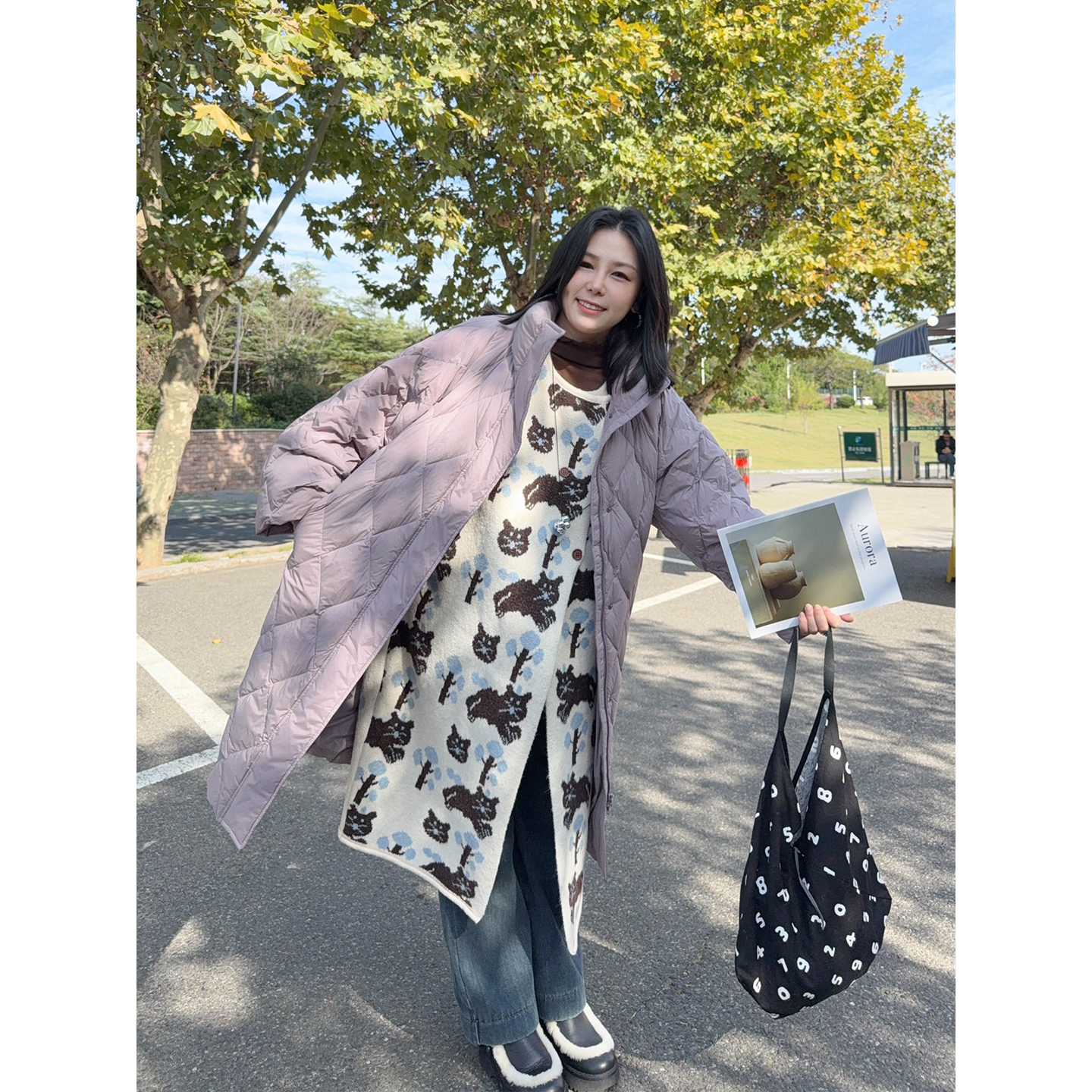 特大码女装设计感黑色阔腿牛仔裤女胖mm小狗刺绣学生加绒直筒长裤