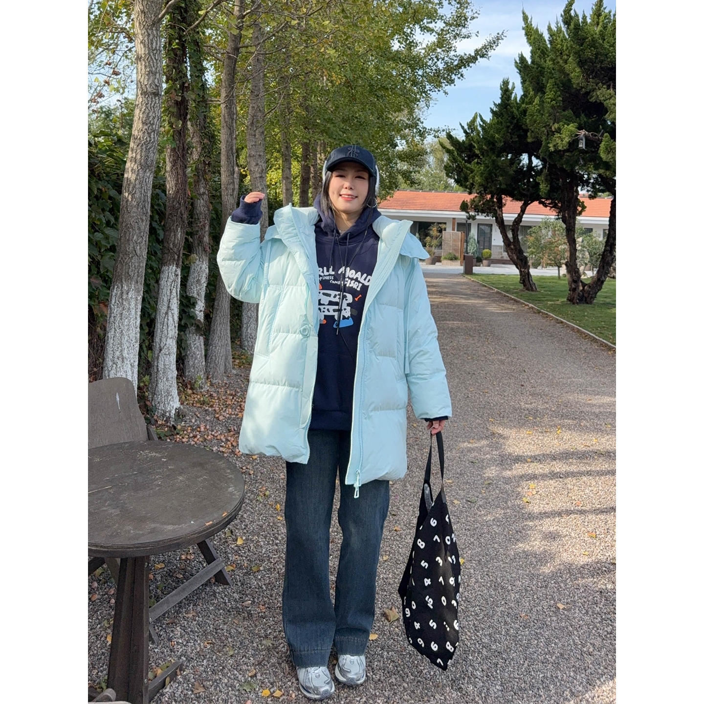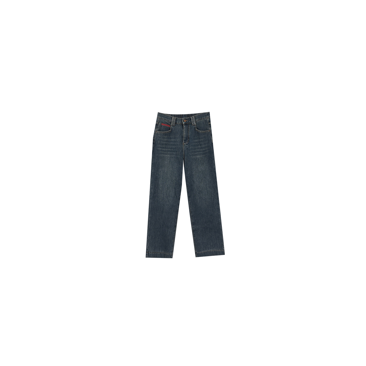 华吉言【雾凇】土耳其进口面料复古猫须水洗蓝宽松直筒牛仔裤女