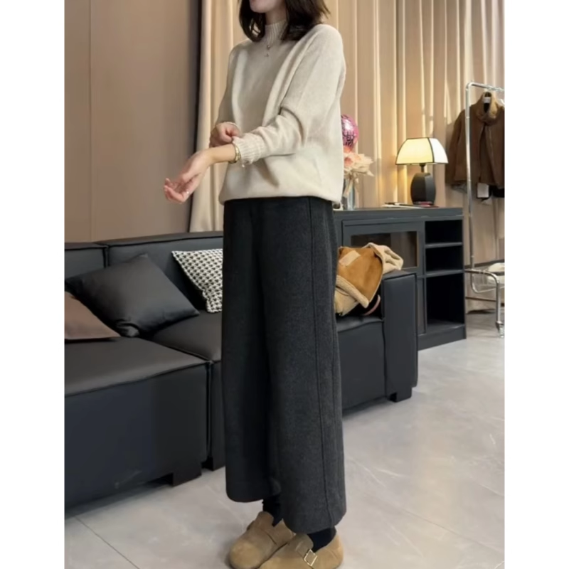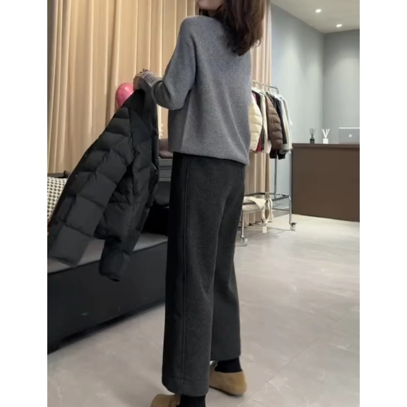 淘宝欧货韩系毛呢奶奶裤女2025冬季新款加绒加厚小个子直筒阔腿休闲裤