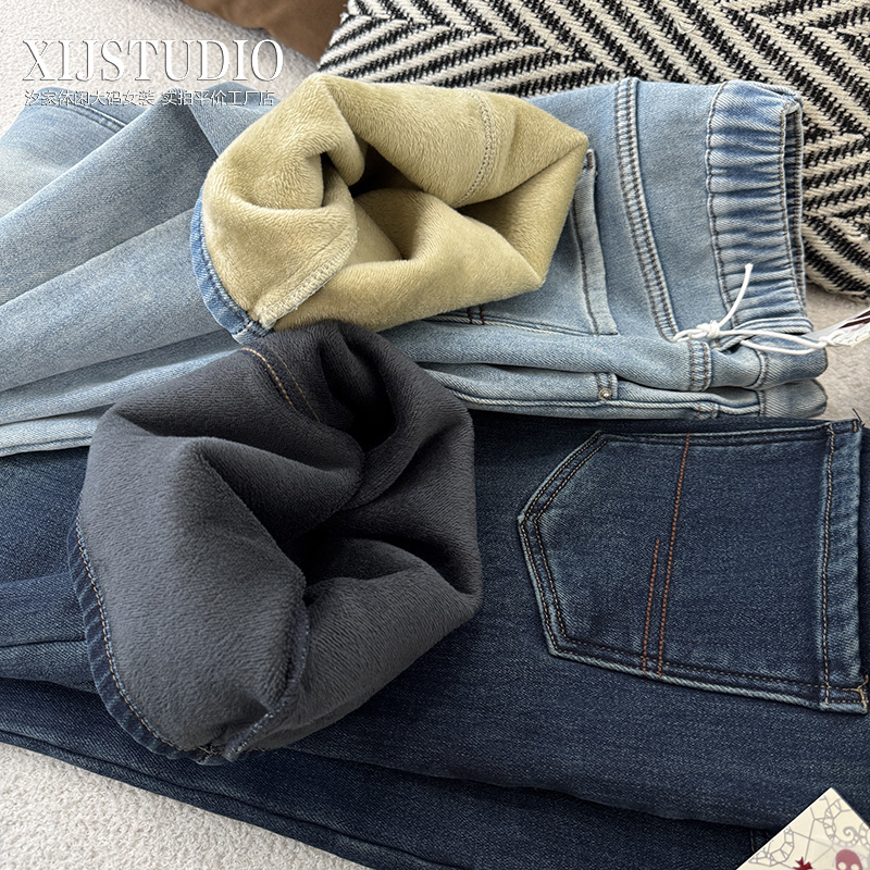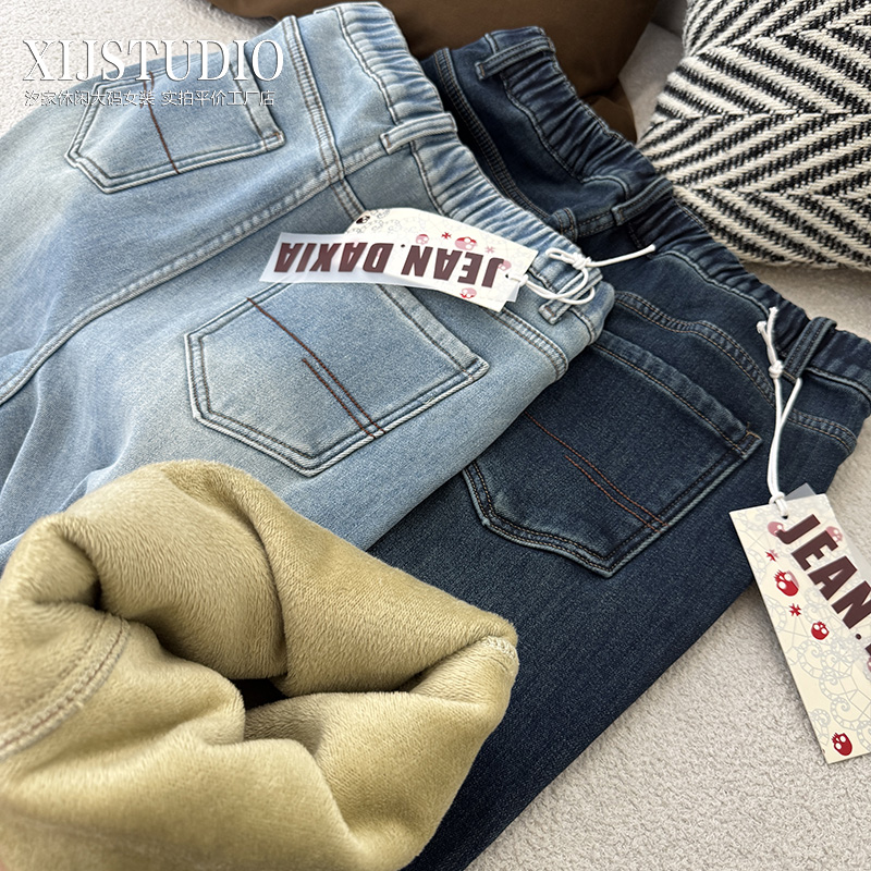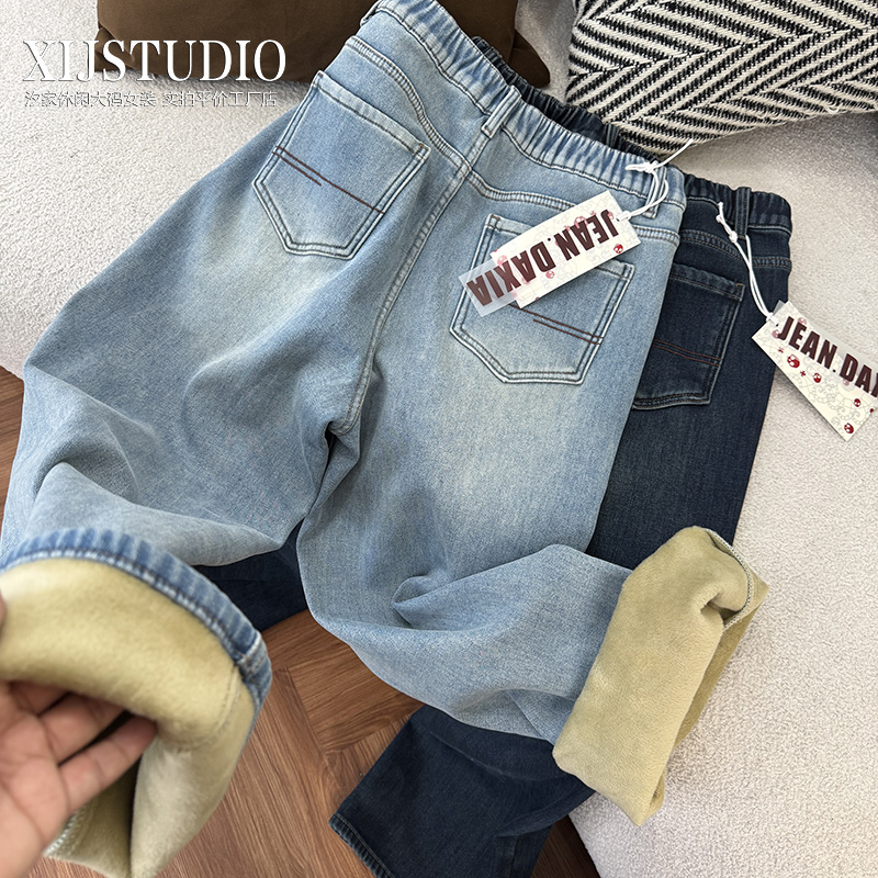 淘宝汐家女裤 秋冬高腰加绒加厚款直筒裤牛仔裤大码冬季宽松阔腿长裤