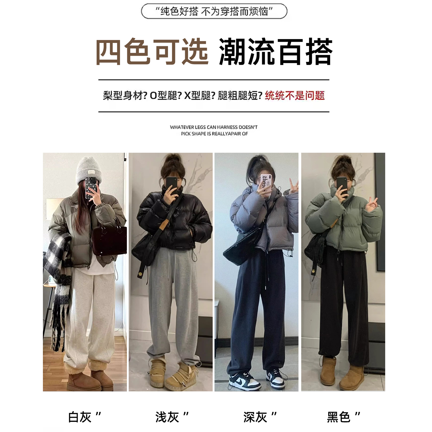 淘灰色休闲运动束脚卫裤女大码秋冬加绒加厚胖mm宽松显瘦直筒阔腿裤
