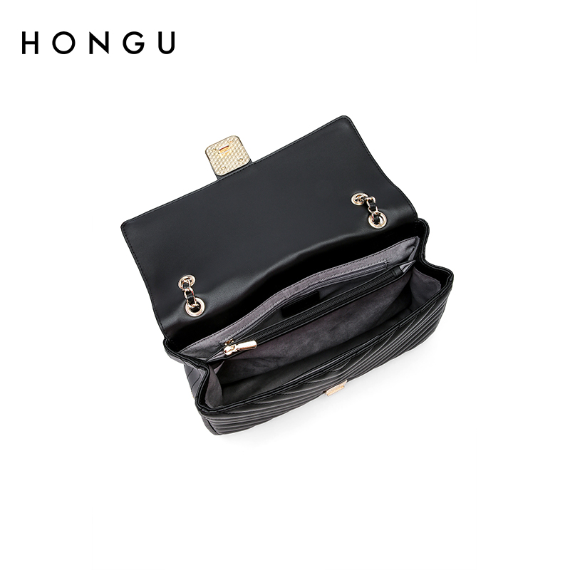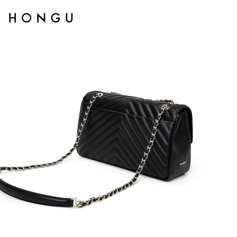 淘宝HONGU红谷女包新款牛皮菱格链条方包时尚百搭单肩斜挎手提腋下包