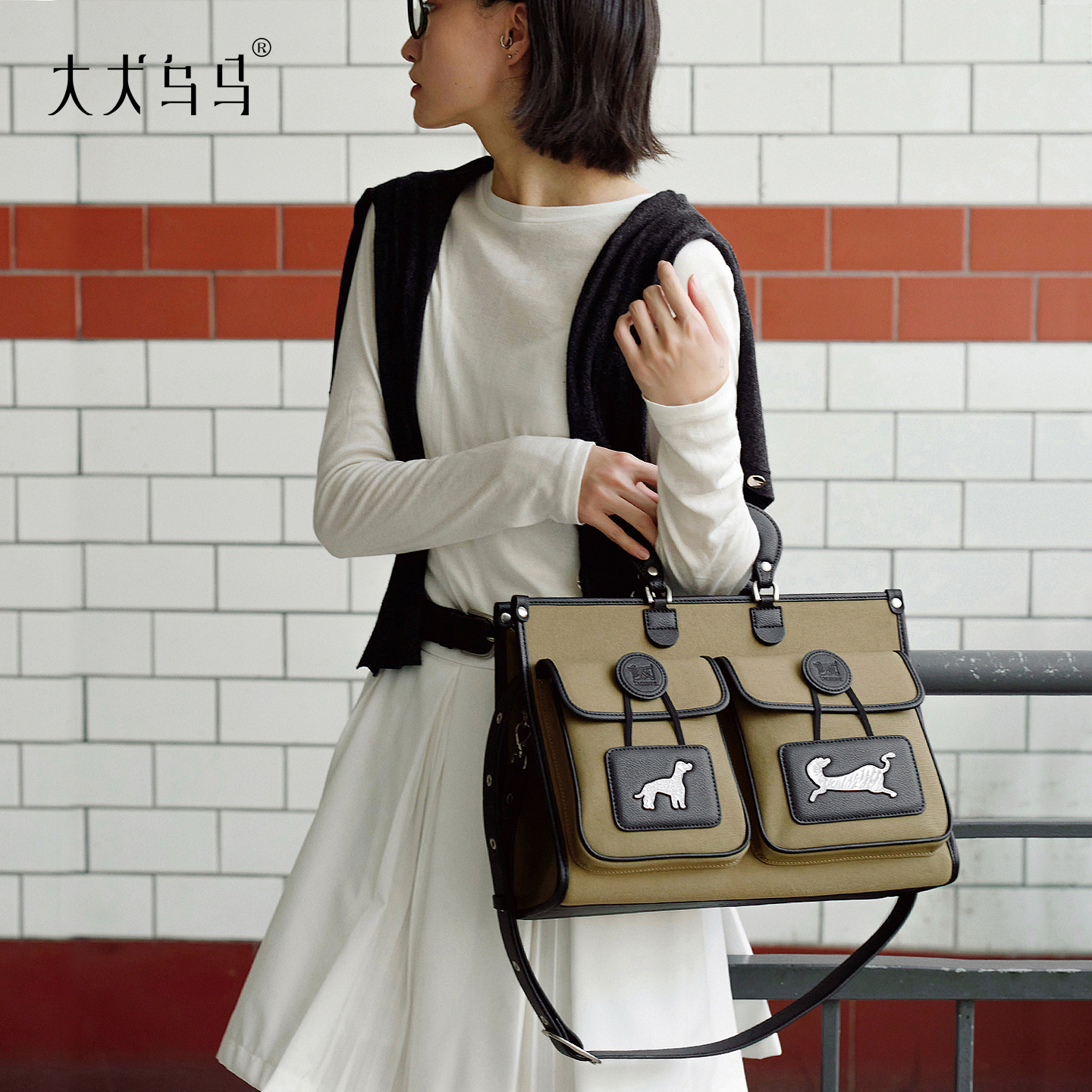 天猫大犬乌马2.0侦探包2025新款尼龙拼皮手提斜挎包通勤笔记本电脑包