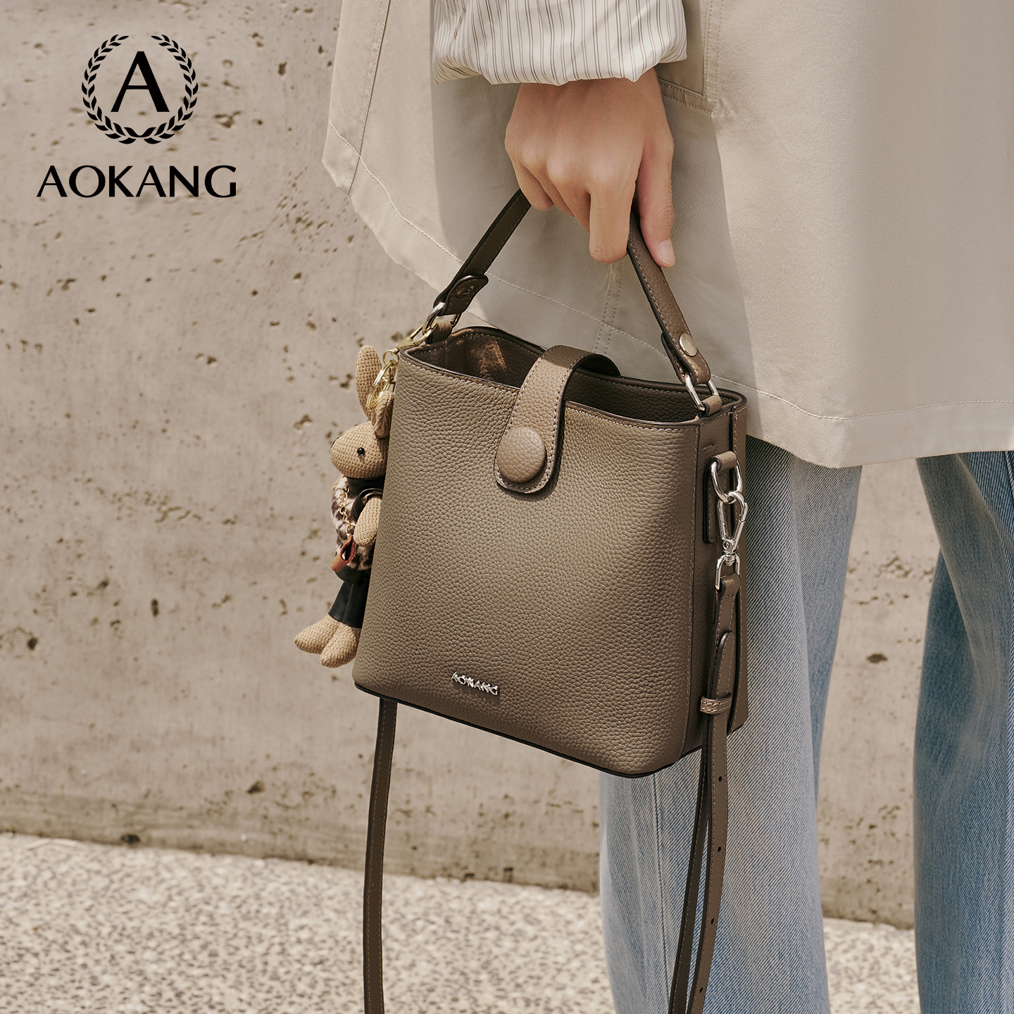 天猫奥康水桶包2025新款手提菜篮子包大容量真皮斜挎包2026女式单肩包