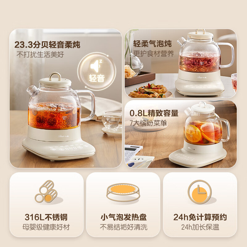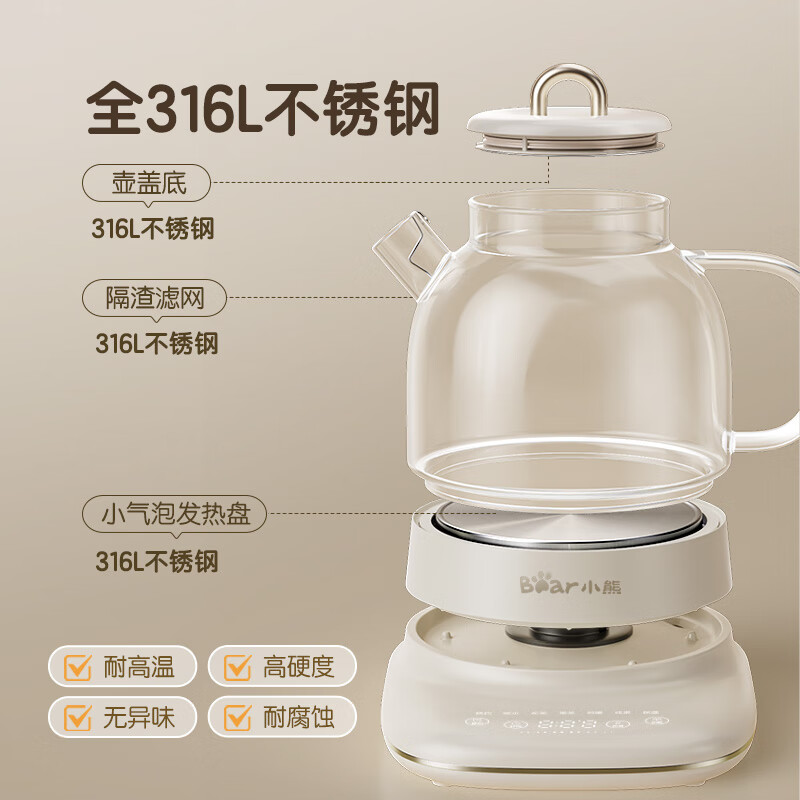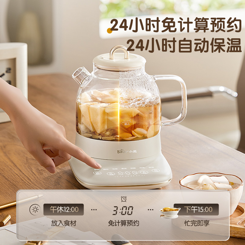 天猫小熊全玻璃养生壶小型办公室mini恒温水壶多功能迷你煮茶壶新款