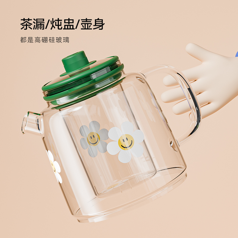 天猫Glasslock&WiggleWiggle联名养生壶家用办公室全玻璃花茶壶煮茶器