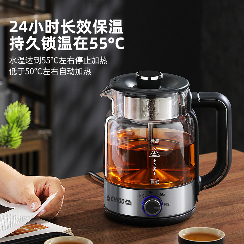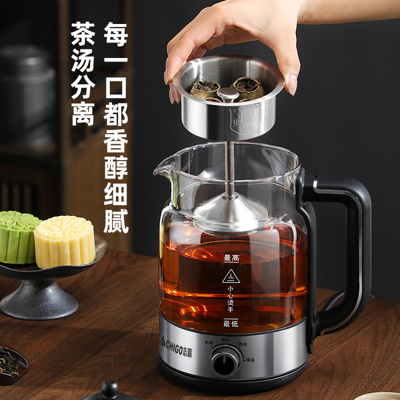 天猫志高煮茶器家用全自动保温黑茶煮茶壶蒸汽玻璃电花茶壶养生蒸茶壶