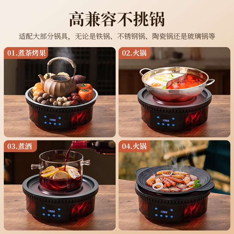 天猫满天红电煮茶炉3D火焰恒温围炉煮茶冬季电茶炉电陶炉全玻璃养生壶