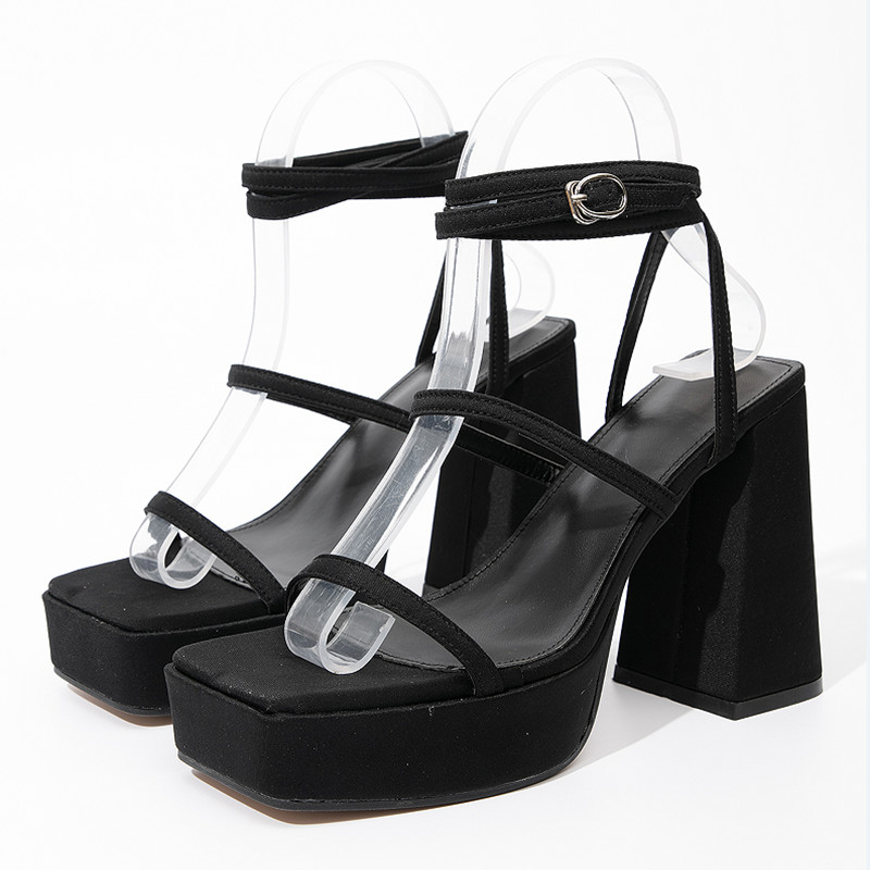 这款商品是一款夏季女装凉鞋,采用了超高跟粗跟设计,鞋跟高度达到11厘米,并配有防水台,穿着稳定且防水性能优越。鞋子采用露趾设计,时尚性感,同时采用交叉绑带和罗马鞋风格的独特设计,极具潮流感。这款凉鞋适合春夏季节穿着,适合派对、约会、逛街等场合,能让女性展现优雅性感和自信的一面。优质的材料和工艺保证了鞋子的舒适性和耐用性,是时尚女性必备的一款鞋子。