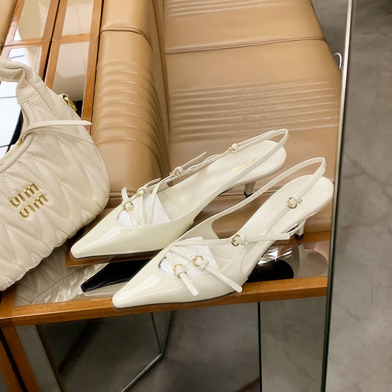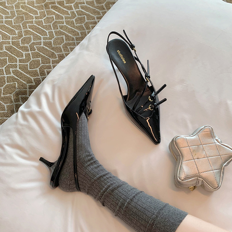 淘宝尖头后空细跟高跟鞋女2024春秋新款包头一字扣带凉鞋女通勤晚宴鞋