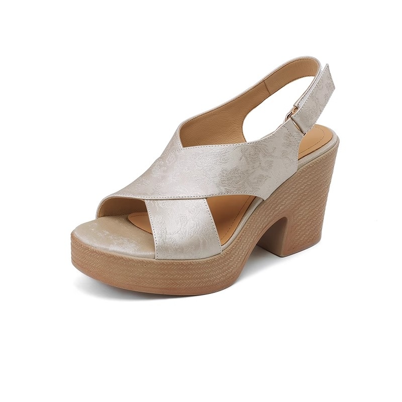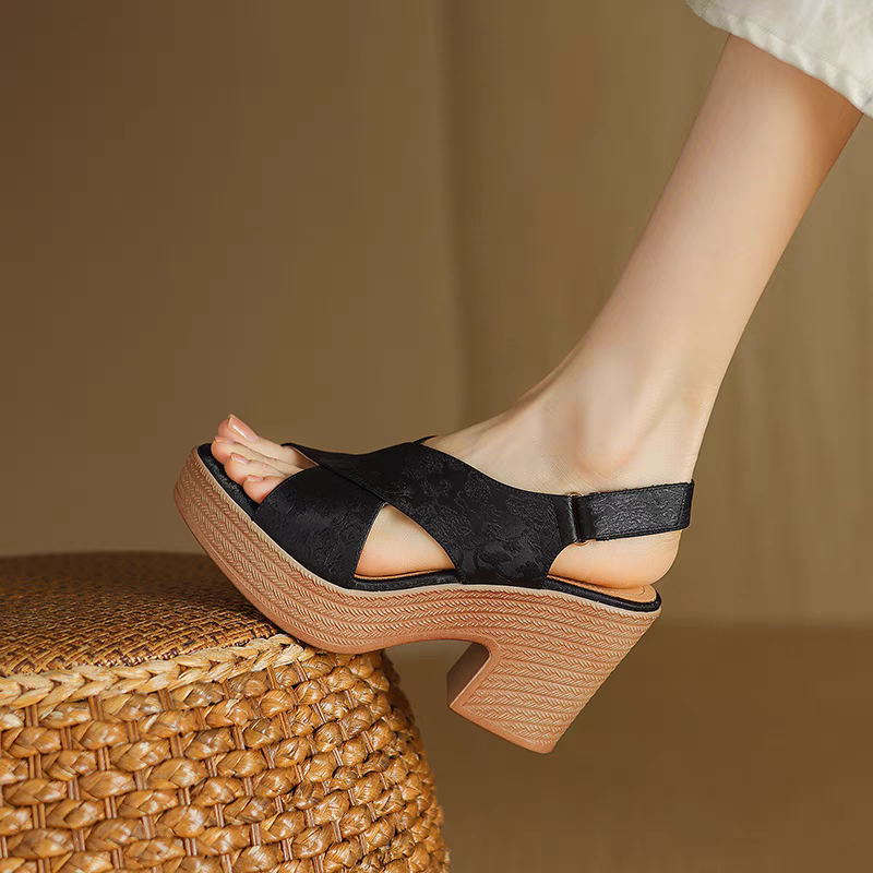 淘宝民族风露趾厚底防水台凉鞋女软皮2025新款夏季高跟粗跟时尚罗马鞋
