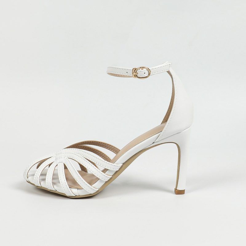 淘可外穿鞋太好看了吧,方头露趾一字水钻细跟凉鞋女银色高跟交叉带