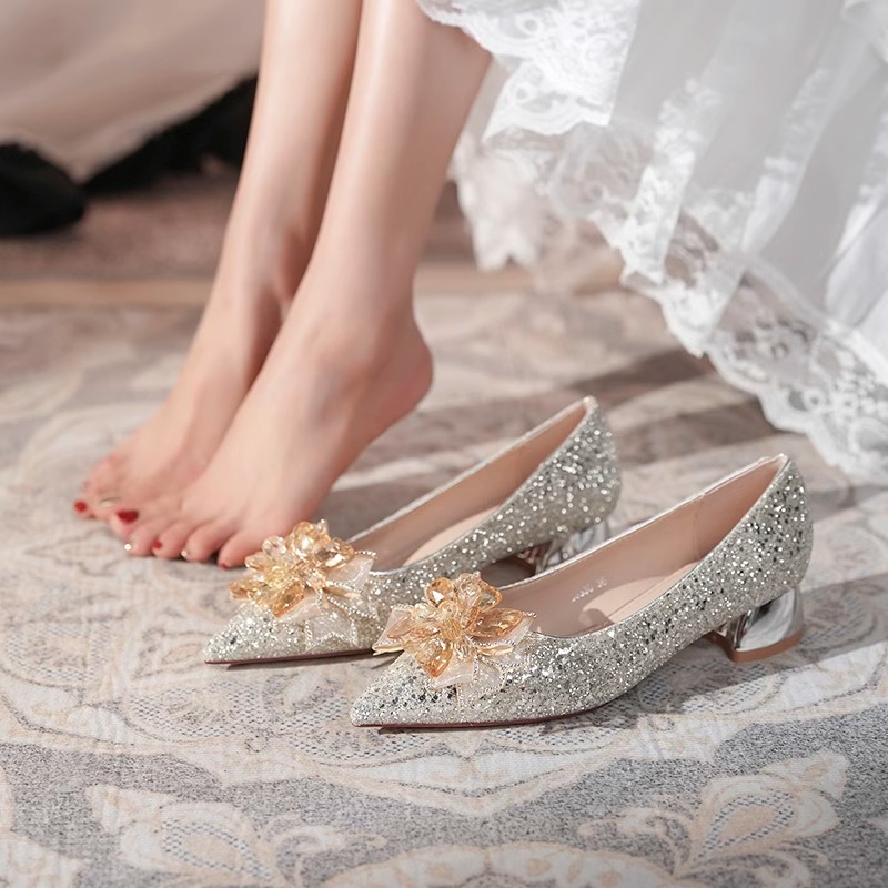 天猫粗跟婚鞋女2025新款禾秀婚纱两穿新娘鞋低跟高跟鞋孕妇不累脚订婚