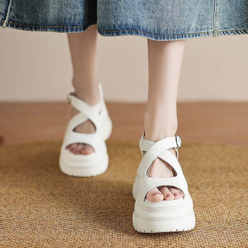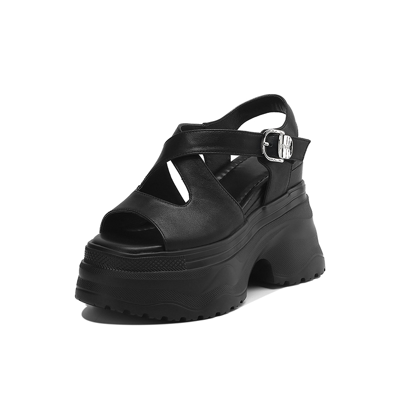 11cm超高跟夏季粗跟凉鞋女 防水台露趾女鞋交叉绑带罗马鞋潮性感