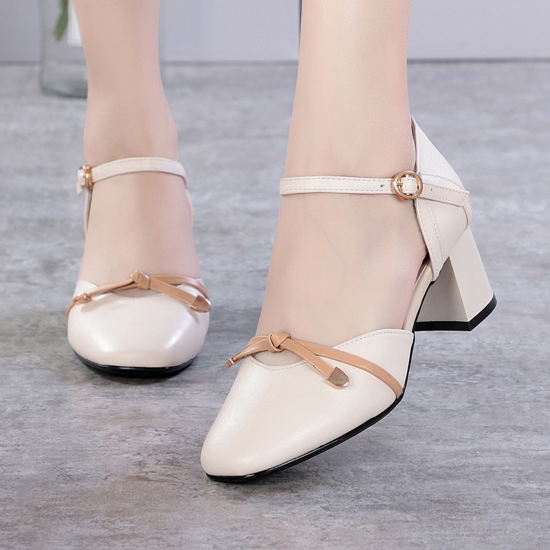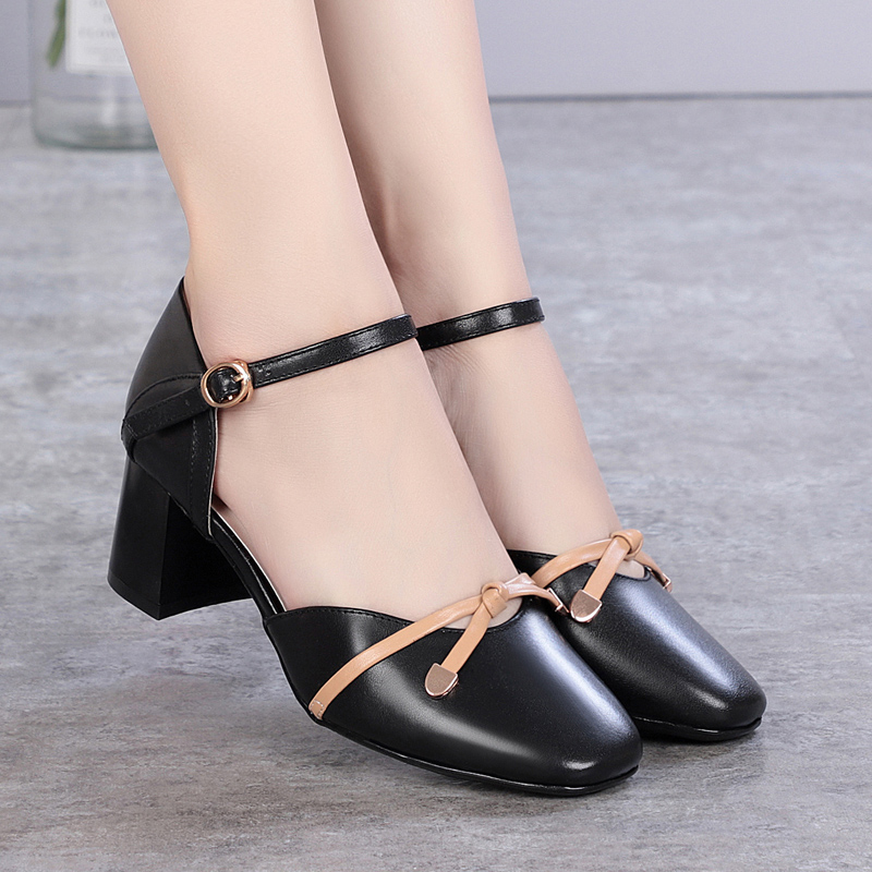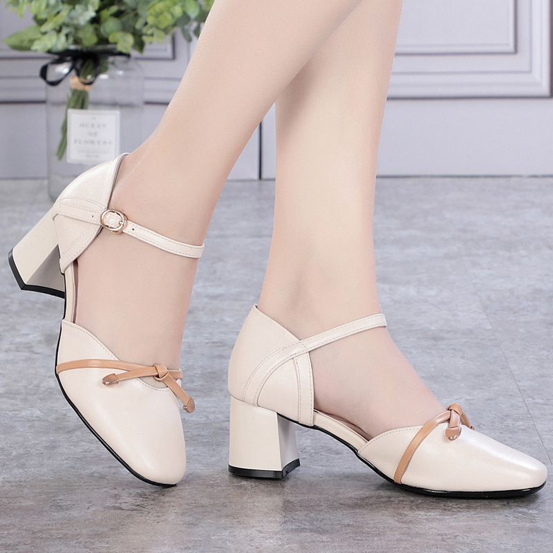 时尚休闲头层牛皮粗跟包头凉鞋2025春夏新款高跟单鞋皮鞋真皮女鞋
