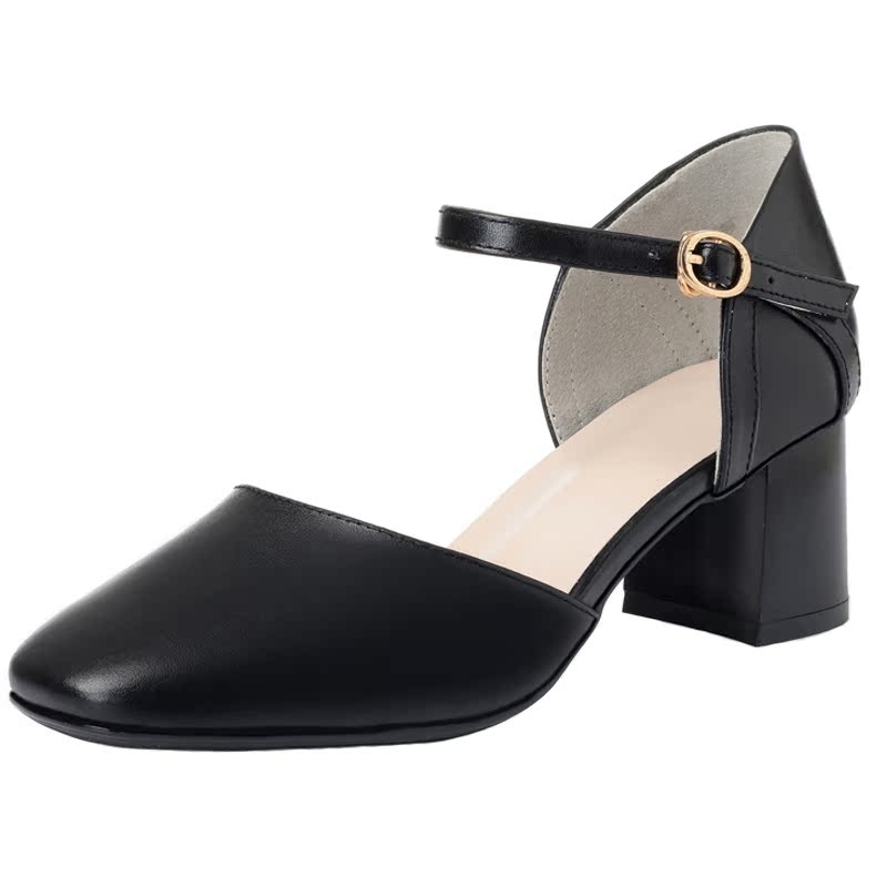 天时尚休闲头层牛皮粗跟包头凉鞋2025春夏新款高跟单鞋皮鞋真皮女鞋