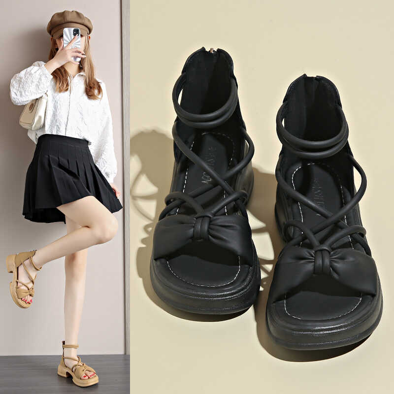 这是最新款的粗跟厚底包跟凉鞋,专为女性设计,适合夏季穿着。这款鞋子采用罗马风风格,露趾设计既透气又时尚,一字扣带设计使得穿脱方便,同时也更加贴合脚部。其厚底和粗跟设计,不仅增高的同时,行走也更加稳健。这款鞋子非常百搭,可以搭配各种服饰,展现出时尚百搭的风格。无论是出门逛街还是旅游度假,这款鞋子都是您不可或缺的时尚单品。总之,这是一款极具时尚感和舒适性的鞋子,适合追求潮流的女性选择。