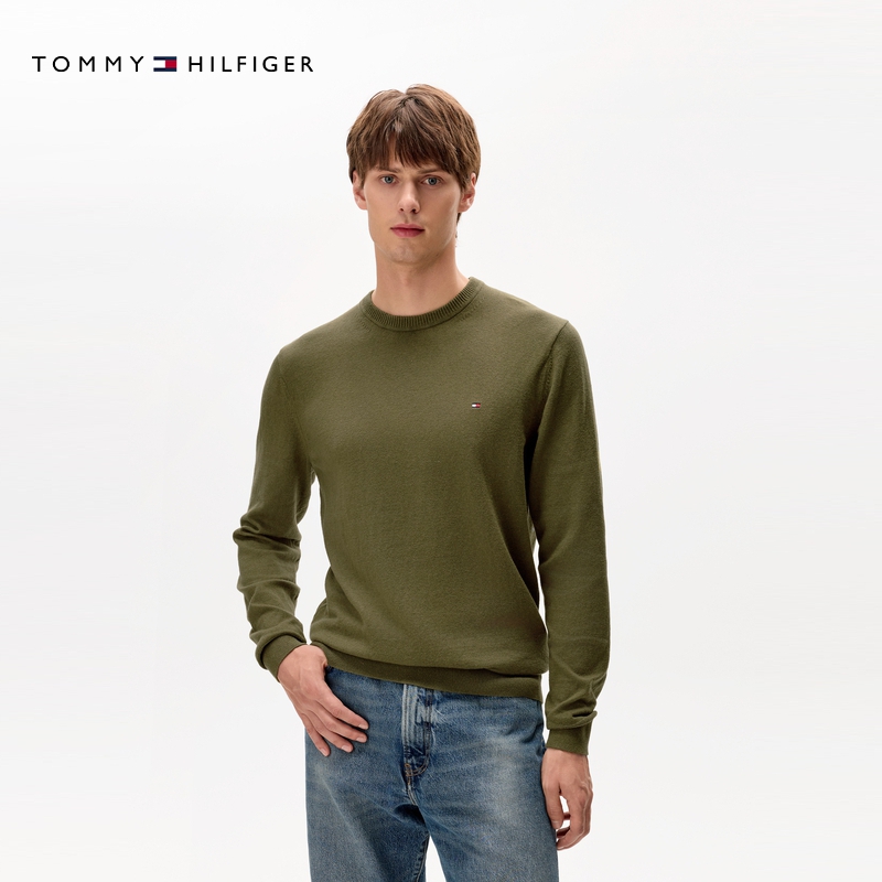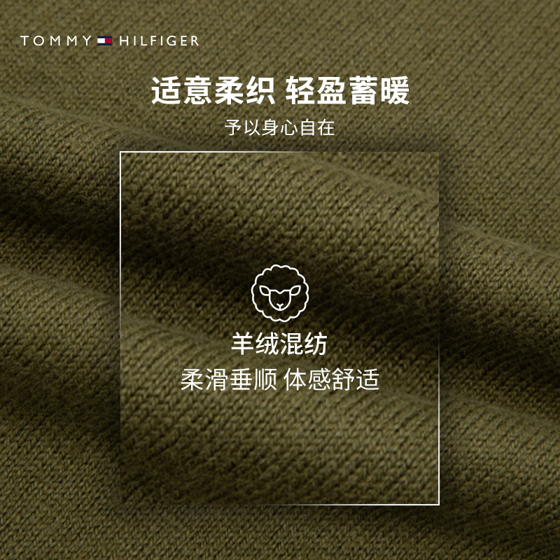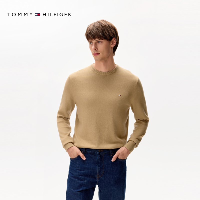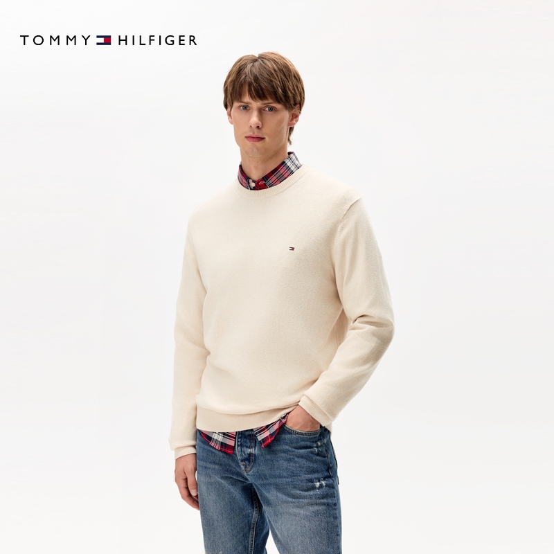 天猫【棉羊绒混纺】Tommy秋冬男休闲通勤圆领内搭打底针织衫毛衣