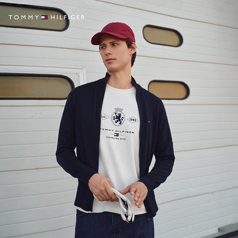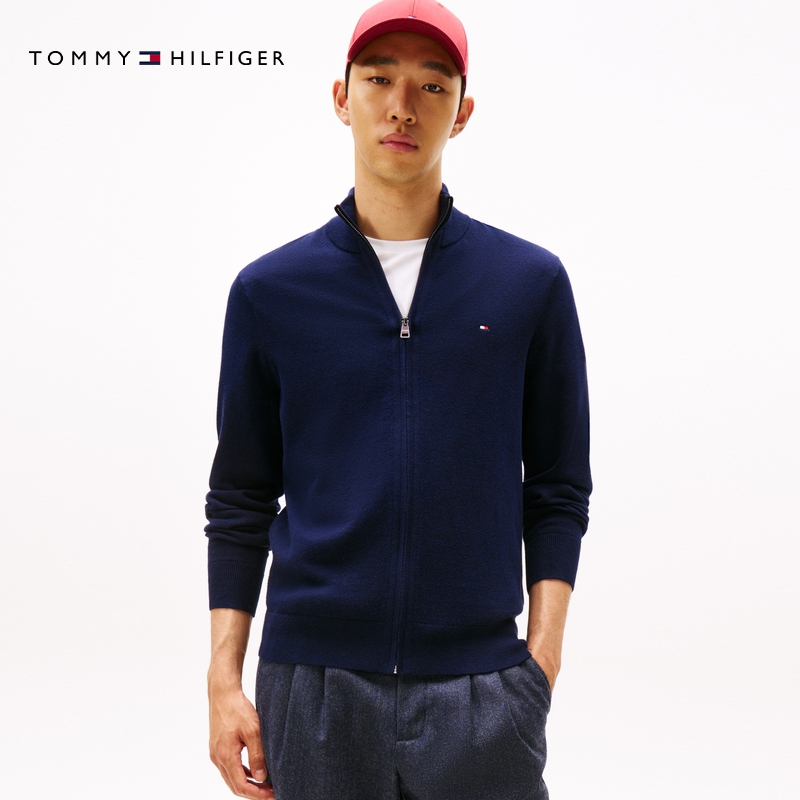 天猫【棉羊绒混纺】Tommy25秋冬新款男休闲立领青年针织夹克开衫外套