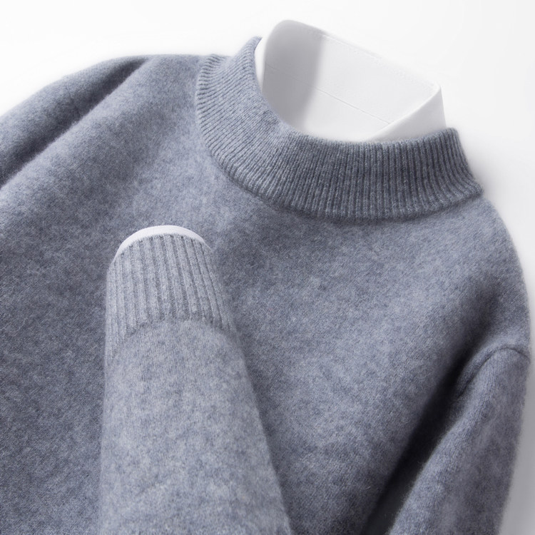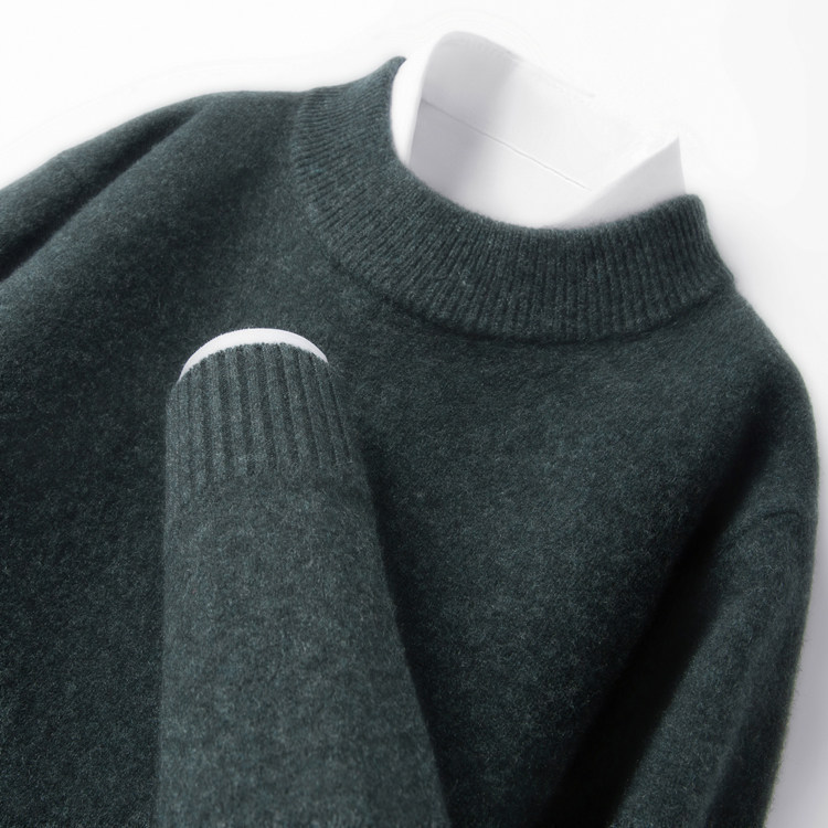 半高领羊绒毛衣男装2023秋冬季羊毛绒长袖打底针织衫宽松中领加厚